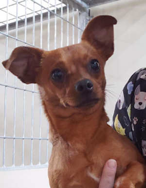This male Chihuahua has a short red coat.