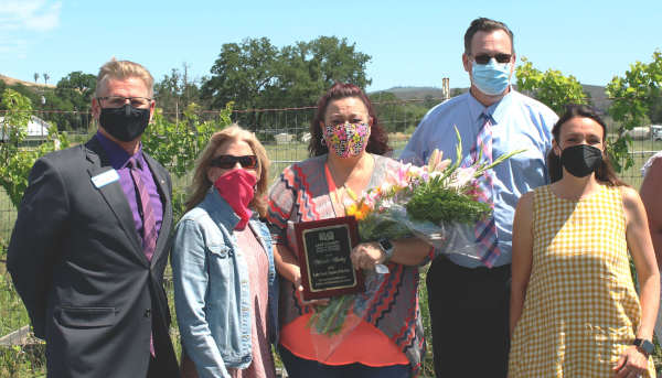 From left to right, Lake County Superintendent of Schools Brock Falkenberg, Minnie Cannon Elementary School Principal Brandy Fischer, Lake County Teacher of the Year 2021 Michelle Mackey, Middletown Unified School District Superintendent Michael Cox and Middletown Unified School District School Board President Misha Grothe. Photo courtesy of the Lake County Office of Education.