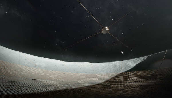 Instead of using thousands of reflective panels to focus incoming radio waves, the LCRT would be made of thin wire mesh in the center of the crater.