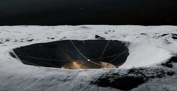 To be sensitive to long radio wavelengths, the LCRT would need to be huge. The idea is to create an antenna over half-a-mile wide in a crater over 2 miles wide.
