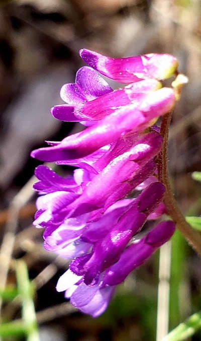 Hairy vetch is a nitrogen fixer, which means they harbor a bacteria in their roots that convert nitrogen from the atmosphere into a form that plants can absorb and use, so farmers and gardeners have planted this nonnative vetch to use as a cover crop to increase the nitrogen in their soils for increased plant growth, so it has naturalized across Lake County and California. However, it has a downside for equestrians.
