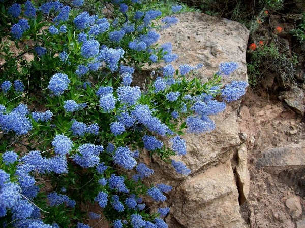 In addition to flowering shrubs that can reach heights over 10’ tall, there are also some that grow like prickly ground cover with holly-shaped evergreen leaves known as Mahala mats, which are well adapted to our clay-heavy soils.
