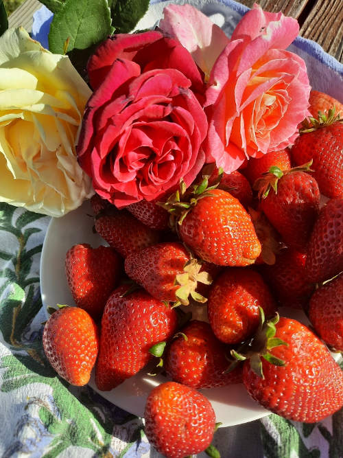 My heart skips a beat or two when I see their luscious red color in the stalls and – joy of all joys! – taste their sweetness.