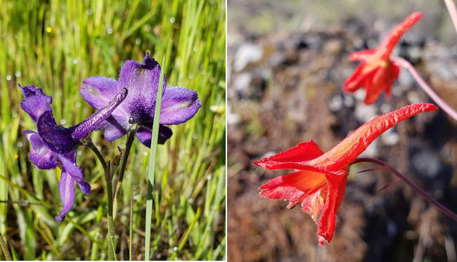 Often grown and used as cut flowers (but don’t pick the wildflowers if not in your own yard), both varieties of these larkspur are classified within the genus Delphinium because the flower buds on the plant look a lot like a dolphin.