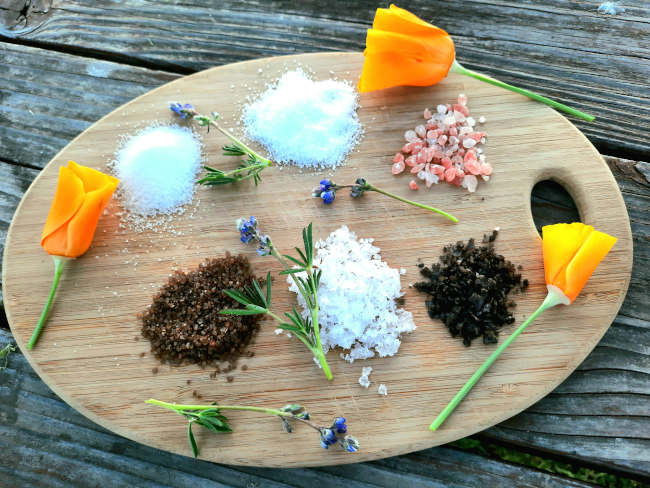 In addition, salts may be enhanced in a wide variety of ways through flavoring. Some popular examples include Japanese salt, which contains ground seaweed, truffle salt (great on popcorn!), and vanilla salt, which is nice for using as a finishing salt on desserts.