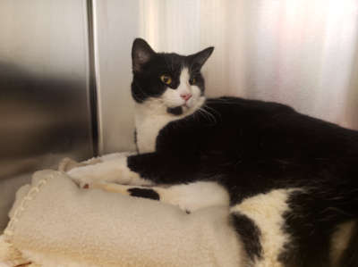This male domestic short hair cat is in cat room kennel No. 142, ID No. 14386. Photo courtesy of Lake County Animal Care and Control. Male domestic short hair cat