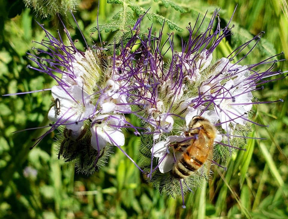 Planted in vineyards and alongside row crops with irrigation, it will continue to grow and flower into the summer months and is highly prized for its long, coiling flower clusters of nectar-rich flowers which open in sequence, giving a long flowering period that attracts not only native and European honey bees, it is also attracts to hoverflies (family Syrphidae), which are useful as biological pest control agents because they eat aphids and other pests.