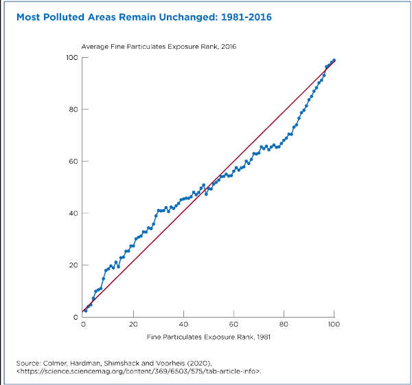 Another paper, recently published in Science, shows that while air quality has improved dramatically since the 1980s, the most polluted neighborhoods in 1981 were still the most polluted 30-40 years later.