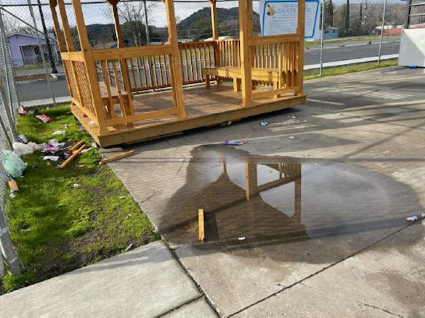 The new Clearlake Skate Park gazebo has repeatedly been vandalized since it was added to the park in February 2021, necessitating a two-week closure for repairs that began this week. Photo courtesy of the city of Clearlake, California. LAKE COUNTY, Calif. – The city of Clearlake this week temporarily closed its Andy Johnson Memorial Skate Park in order to repair damage caused by vandalism, which the city manager said has become an ongoing problem.