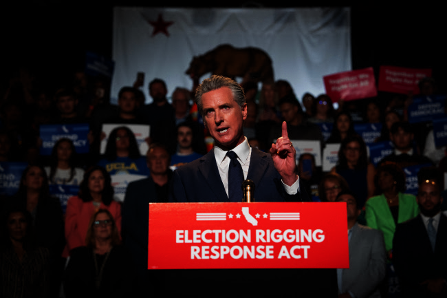 As part of Thursday’s announcement, Newsom unveiled the framework for the proposed constitutional amendment — which will be known as The Election Rigging Response Act — that would go before California voters this November.