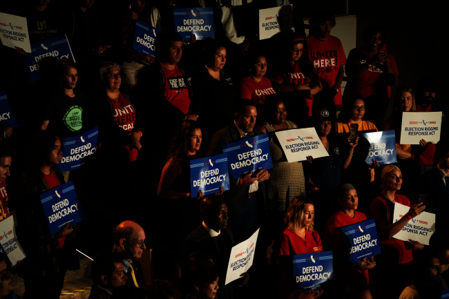 Supporters at an event on Thursday, August 15, 2025, in Los Angeles, California, in which Gov. Gavin Newsom announced a plan to respond to Texas’ efforts at redistricting. Photo courtesy of the Governor’s Office.