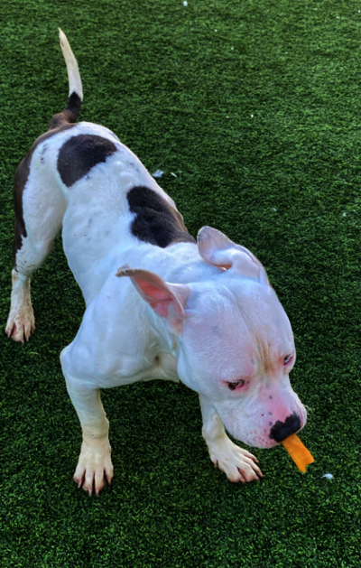 This week’s dogs include “Auto,” a male American pit bull terrier mix with a brown and white coat. Staff said he has been neutered.