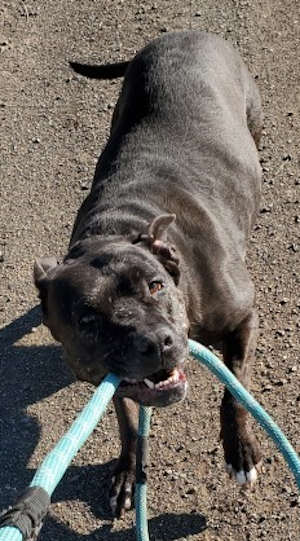 “Breeze” is a female American Pit Bull Terrier mix.