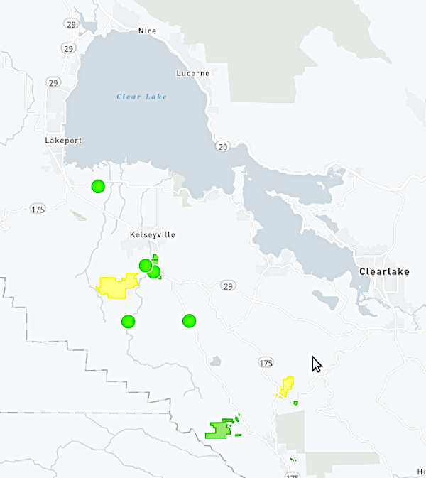 One outage began at 10:38 p.m. and impacted 22 customers, while 90 more were without power as of 10:47 p.m. At 1:43 a.m. 305 more customers in Kelseyville lost power.