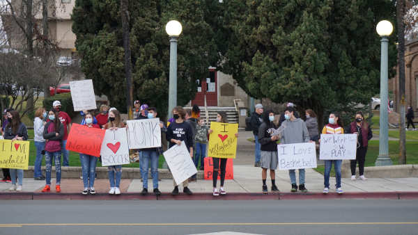 LAKEPORT, Calif. – A large group of parents, students, coaches and other community members gathered in Lakeport Friday afternoon to rally for reopening school sports.