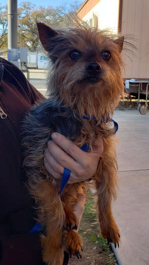 This male Yorkshire Terrier has a medium-length brown and black coat.