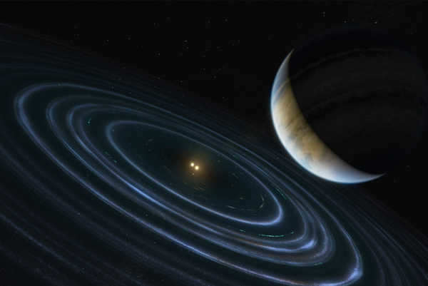 “The idea is that every time the planet comes to its closest approach to the binary star, it stirs up the material in the disk,” said team member Robert De Rosa of the European Southern Observatory in Santiago, Chile, who is a former UC Berkeley postdoctoral fellow. "So, every time the planet comes through, it truncates the disk and pushes it up on one side. This scenario has been tested with simulations of this system with the planet on a similar orbit — this was before we knew what the orbit of the planet was.”