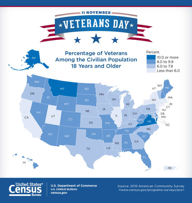 Census Bureau reports on numbers of veterans in California, across the nation