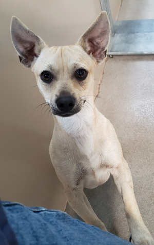 This male Chihuahua has a short tan coat.