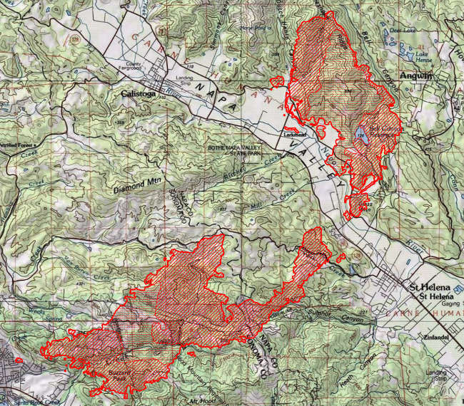 Early Monday, firefighters reported over the radio that the fire was jumping Highway 29 in Napa County and also had crossed over in the 4400 block of Silverado Trail.