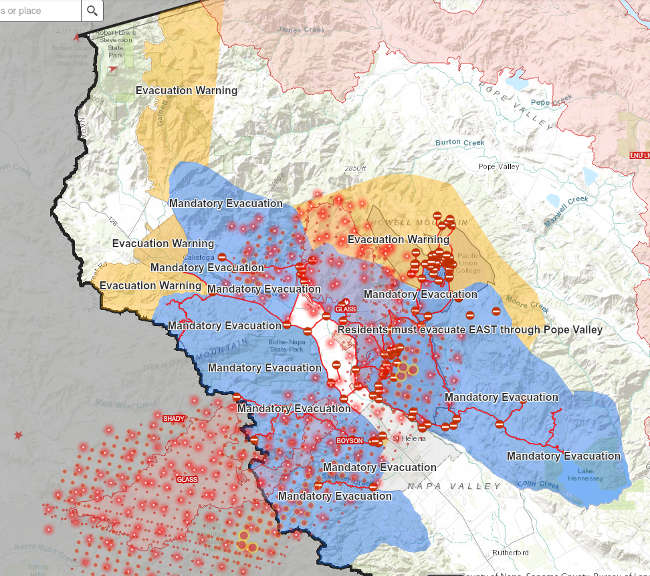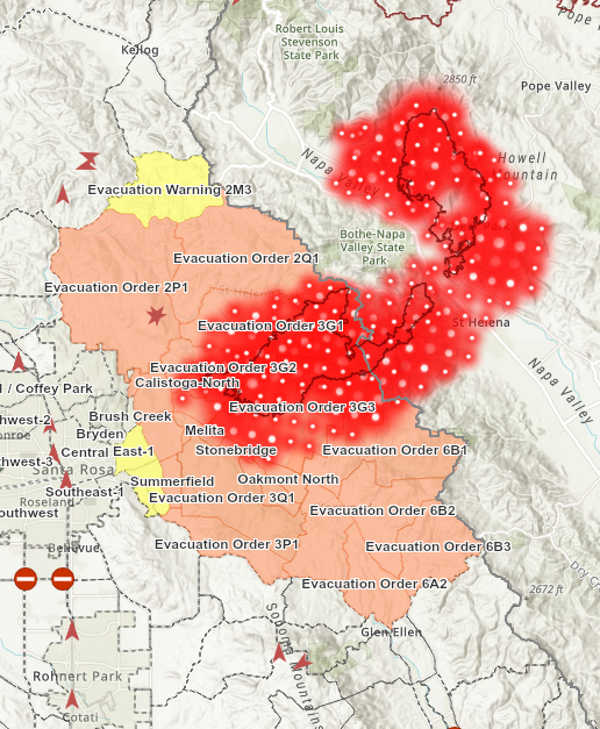 The fire has led to evacuations across Napa and Sonoma counties. The maps below show the evacuation areas as of Monday morning for both counties.