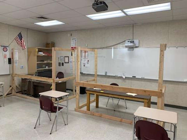 Annous has personally spent his evenings and weekends in the high school shop fabricating custom, fit-to-order table dividers, shields and plexiglass teaching zones requested by staff.