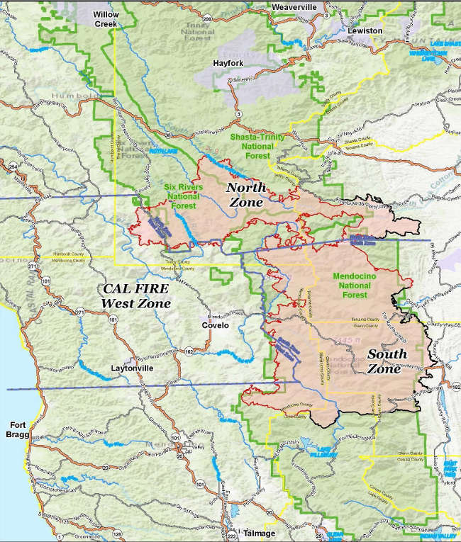 In the South Zone of the August Complex, evacuation orders are in effect for Mendocino, Glenn and Lake counties, officials said. In Lake County, the evacuation orders cover Pillsbury Ranch and the entire Lake Pillsbury basin. Evacuation information is available here.