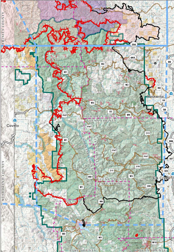 In the Lake Pillsbury area, crews and dozers connected fire line to previously constructed fire lines from the 2018 Ranch fire. Structure protection groups are committed to building fire lines and removing vegetation around private property and critical communications infrastructure, the Forest Service said.