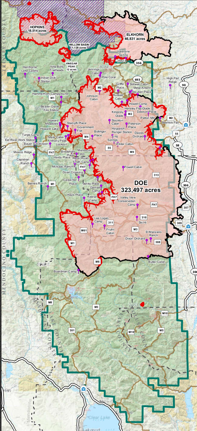 Officials said there are 1,138 resources committed to the complex, which is burning primarily in the Mendocino National Forest.