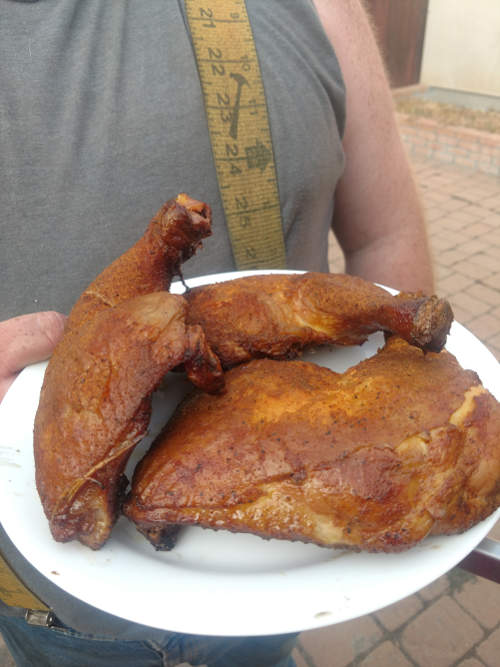 Bob Oertel of Middletown, California, displays chicken he grilled to perfection. Outdoor grills, barbecues and smokers will be used throughout the nation this holiday weekend to celebrate Labor Day. Photo by Esther Oertel.