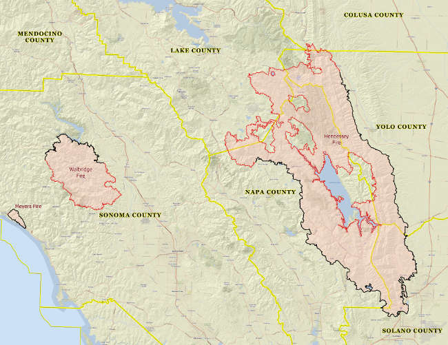 – Colusa County: No structures damaged or destroyed. – Sonoma County: 212 destroyed (118 homes); 16 damaged (seven homes). – Yolo County: 13 destroyed (four homes), six damaged (three homes).