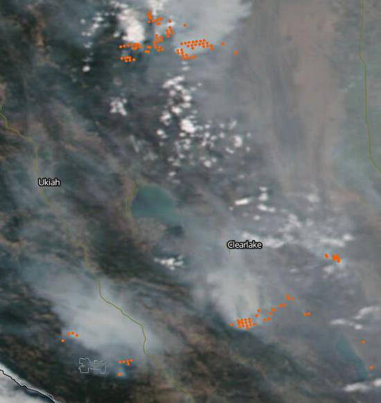 This week Lake County’s air basin has been heavily impacted by smoke not just from the LNU Lightning Complex – burning in southern Lake County, along with Napa, Solano, Sonoma and Yolo counties – but also from the August Complex of fires and the Hull fire in the Mendocino National Forest.