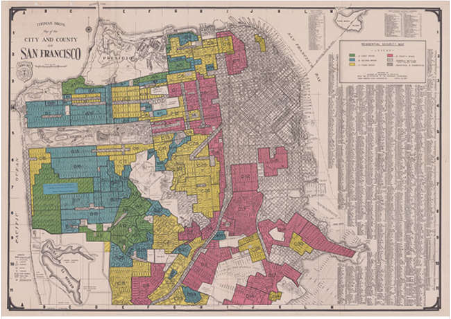 Redlining maps, drawn by the Home Owners’ Loan Corp. in 1935, categorized neighborhoods in U.S. cities by the perceived security of mortgage loans, from green indicating the “best” investment to red indicating a “hazardous” investment. Public domain image. Past discriminatory housing practices may play a role in perpetuating the significant disparities in infant and maternal health faced by people of color in the U.S., suggests a new study by researchers at the University of California, Berkeley.