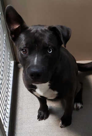 This male pit bull terrier has a black coat.