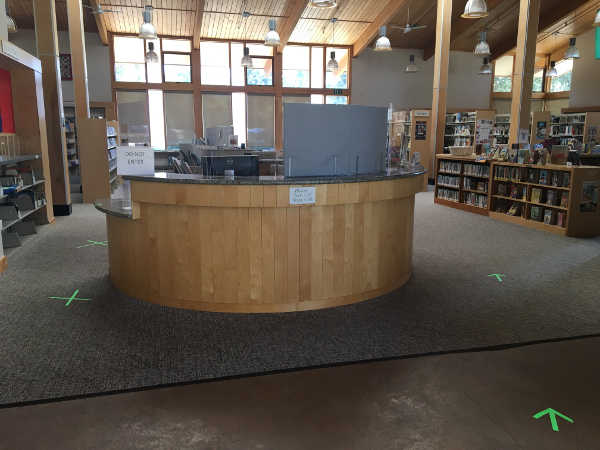 Middletown Library in Middletown, California, displays its new social distancing look as it reopens for Grab & Go library services. All Lake County Library branches are now open to the public with safety procedures in place. Photo courtesy of the Lake County Library. LAKEPORT, Calif. – Lake County Library branches are now open for Grab & Go Library service during normal operating hours for in-person checking out of materials and for computer use only.
