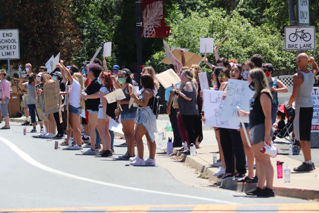 The Black Lives Matter demonstration, organized late last month by Middletown High School graduates CeCe Turner, Giana Tyrrell and Alle Vierra, took place from 1 to 3 p.m. Wednesday, with protesters lining both sides of Highway 29, chanting and, at the end, kneeling in silence for nearly nine minutes.