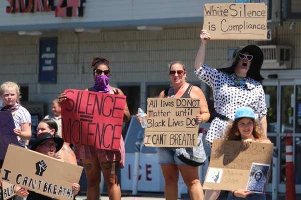 A professional photographer, Garcia said as she arrived and walked up behind the protesters, “The chanting brought me to tears. There were at least 150 people with signs screaming for justice for George Floyd, for the end of racism, and for an end to police brutality.”