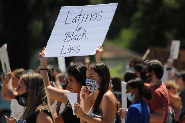 During the event, Garcia said she saw and experienced acts of kindness, including watching as one man wearing a handkerchief for a mask carried around a box full of ice and cold bottled water for protesters. There also was a table of snacks for anyone to help themselves.