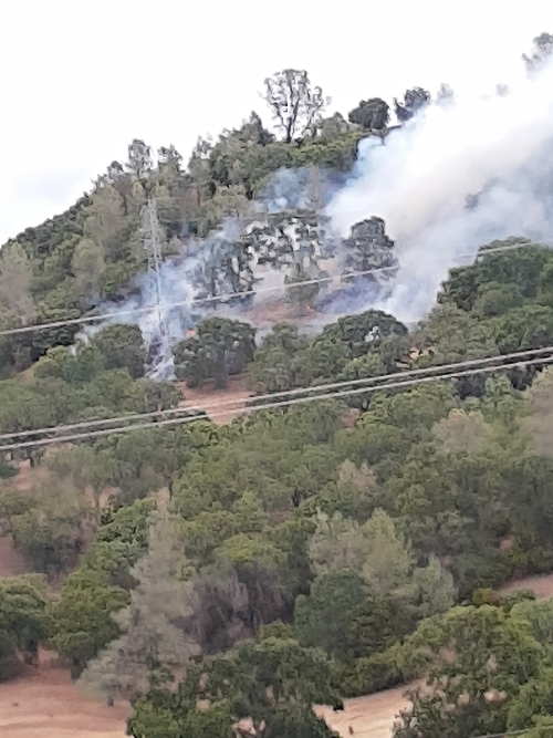 A Cal Fire helicopter arriving at the scene at around 2:15 p.m. said the fire was between two to four acres, with a slow rate of spread and approaching the crest of the hill. More resources were requested, including airplanes and dozers.