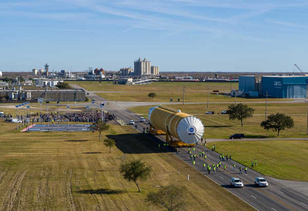 The teams’ coordination and efforts were prominently displayed as the first SLS rocket core stage was rolled out from NASA’s Michoud Assembly Facility in New Orleans to the agency’s Pegasus barge on Jan. 8, then transported by Pegasus from New Orleans to nearby NASA’s Stennis Space Center near Bay St. Louis, Mississippi, for the core stage Green Run test series.