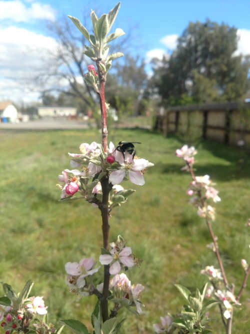 The pink-white blossoms of the apple tree are among the first to appear in our small orchard, and I think of them as harbingers of spring.