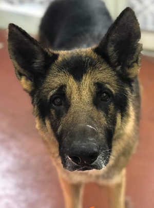 “Princess” is a female German Shepherd with a black and tan coat.