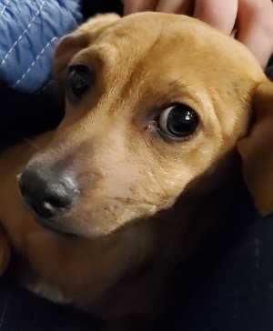 “Missy” is a female Chihuahua puppy with a short tan coat.
