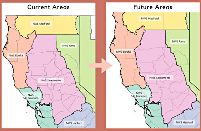 The change in the National Weather Service forecast areas including Lake County, California. Images courtesy of the National Weather Service.