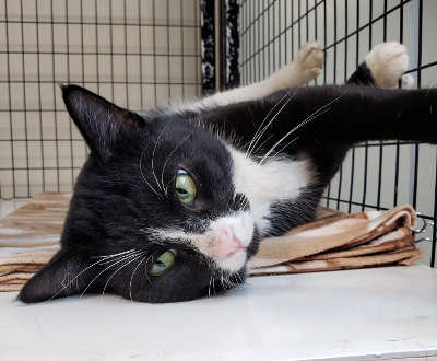 This female tuxedo cat is in cat room kennel No. 4, ID No. 13545. Photo courtesy of Lake County Animal Care and Control. Female tuxedo cat