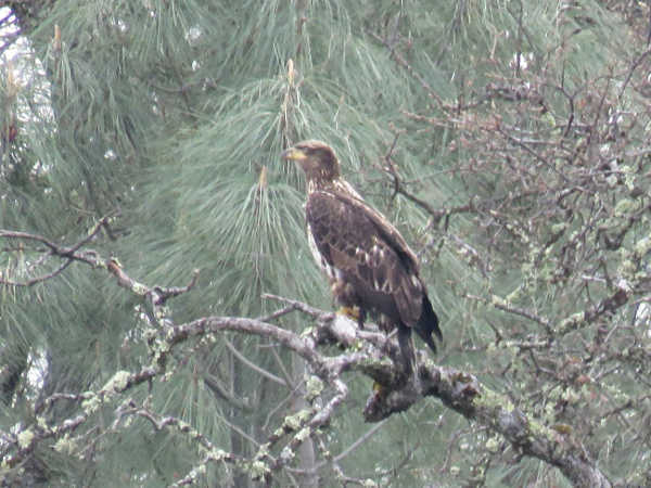 A second-year bald eagle at Clear Lake State Park in Kelseyville, California. Photo by Kathleen Scavone.