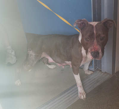 This female pit bull terrier mix is in kennel No. 30, ID No. 13569. Photo courtesy of Lake County Animal Care and Control. Female pit bull terrier