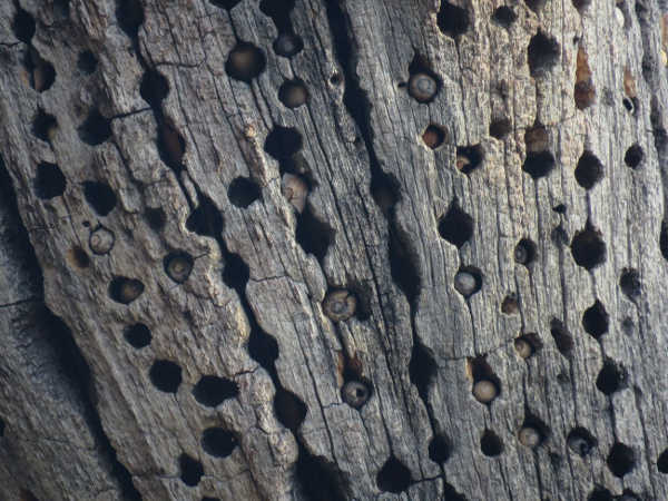 Some trees, like mature oaks, hold deep ridges and furrows, gaps which are called rhytidome.