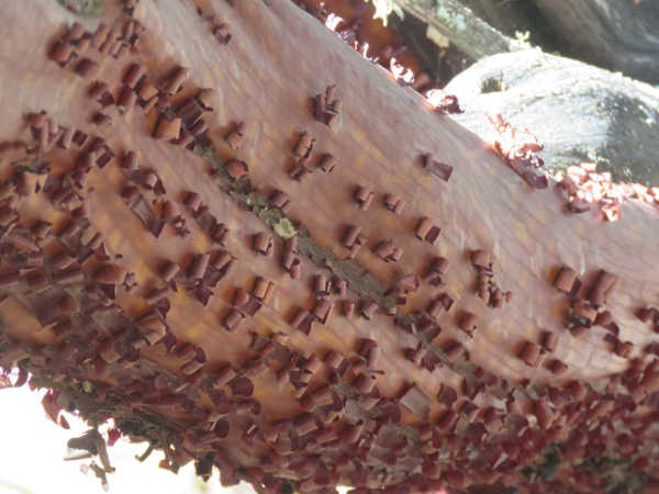 Both trees have adapted a special way to protect their lovely, smooth bark surfaces by way of peeling. Each year their bark peels into papery scrolls which protects their smooth surfaces from the ravages of parasites, fungi, mosses and lichens.