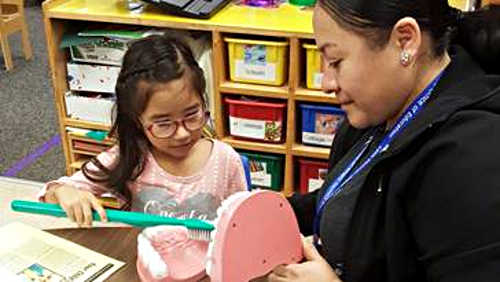 This collaboration includes weekly lessons on oral health, nutrition, exercise, hygiene, safety, and kindergarten readiness, and will be continuing for the remainder of the school year.